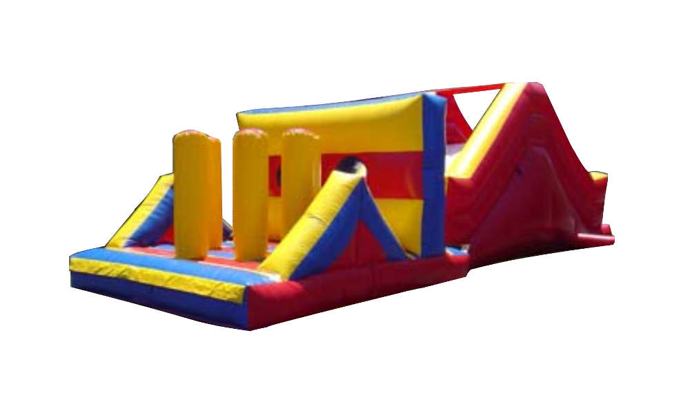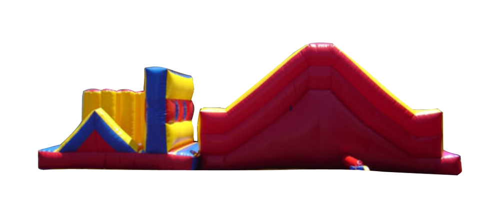 This is our famous obstacle course. It’s a lot of fun for teenagers and small kids as well. It comes with a slide and 1 section (B) of obstacles.