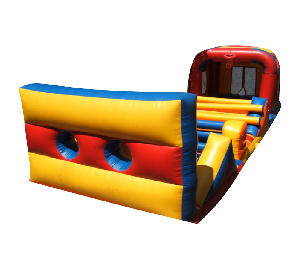 This amazing inflatable is a combination of a Jumper and our obstacle courses. It’s a 3n1 deal, obstacles, basketball hoop and jumper. It’s lots of fun for teenagers and small kids as well.
