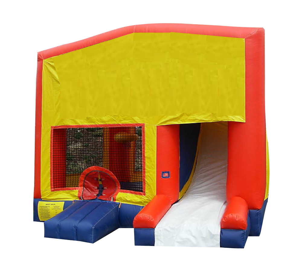 Kids can jump, climb, slide and it comes with a basketball hoop inside. This unit is great for small areas. Good for all ages, including teenagers. You can order it plain or with your favorite theme added to it.