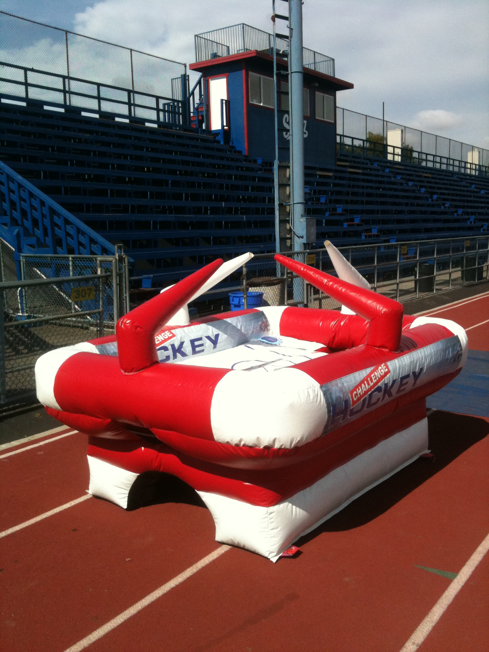 A great way to get team-spirited hockey fun at your event. Colored hoses direct a stream of air used to maneuver the “puck” across the board and into the opponent’s goal.