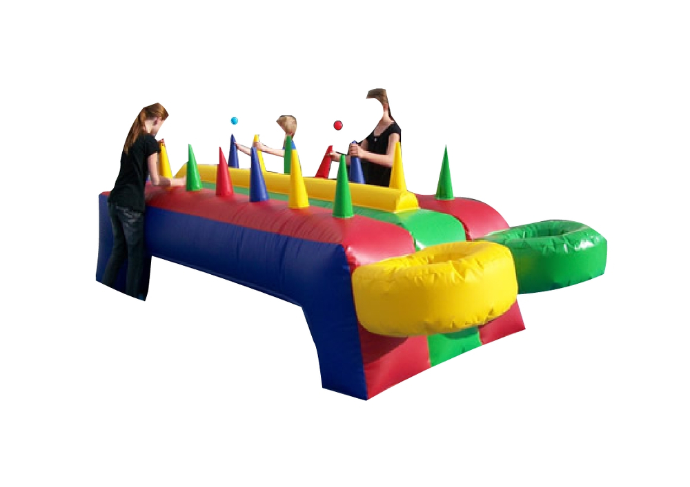 Two players move the ball from one cone to the next as quick as possible. The ball will float onto the next cone all the way to the basket at the end of the course. The first one to complete the course is the winner! Great for all ages.