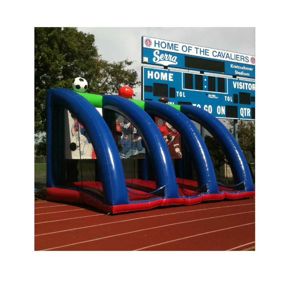 This game is great for sporting events, churches or backyards. It offers 3 activities; football, soccer and basketball. It’s great way to practice athletic skills. Balls NOT included.