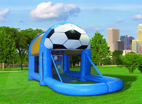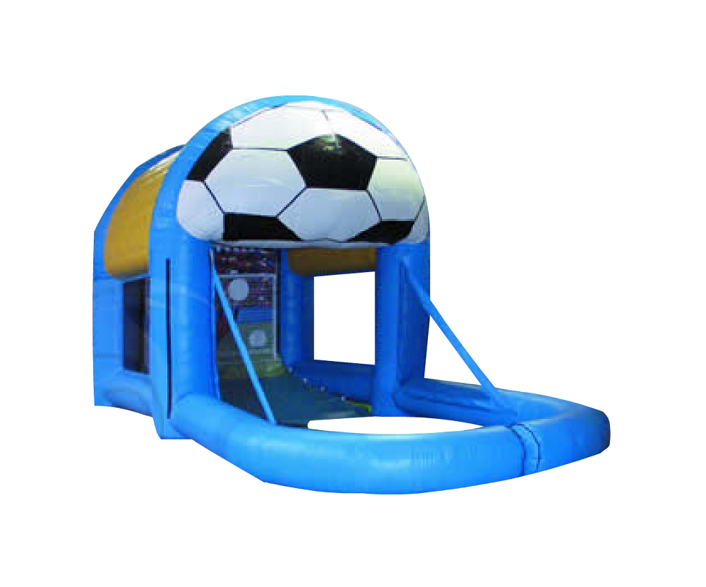 Players take their shot at the back wall to score points through the different openings. The soccer ball then returns to them. It’s a great way to promote exercise, healthy competition and sportsmanship. Great for birthday parties or big events.