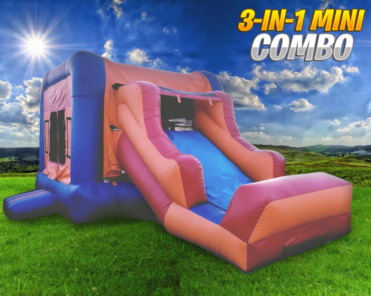 It consists of a very big slide (almost 20’ high) and a very big jumper. Kids can jump, climb, slide and it comes with a basketball hoop in it.