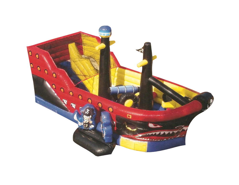 Kids can bounce in the jumping area, battle the pop-up obstacles and enjoy the climb and slide located at the stern. Great for theme parties and carnivals. Great for all ages including teenagers. Two Sizes: