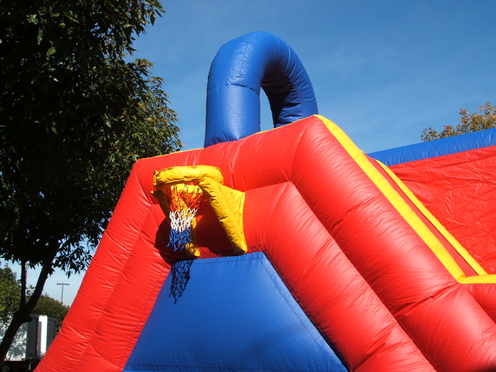 Our 5n1 unit has a jumping area, climbing, obstacles and two basketball hoops (inside and outside), all in one! It fits any driveway. Great for both small kids and teenagers.