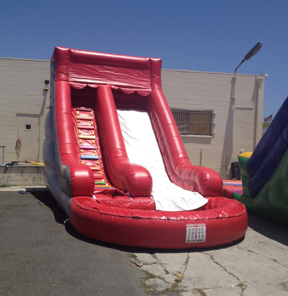 This water slide is one of the biggest water slides on the market. An incredible thrill ride for those hot summer days. Good for all ages! 28’L x 15’W x 19’H.